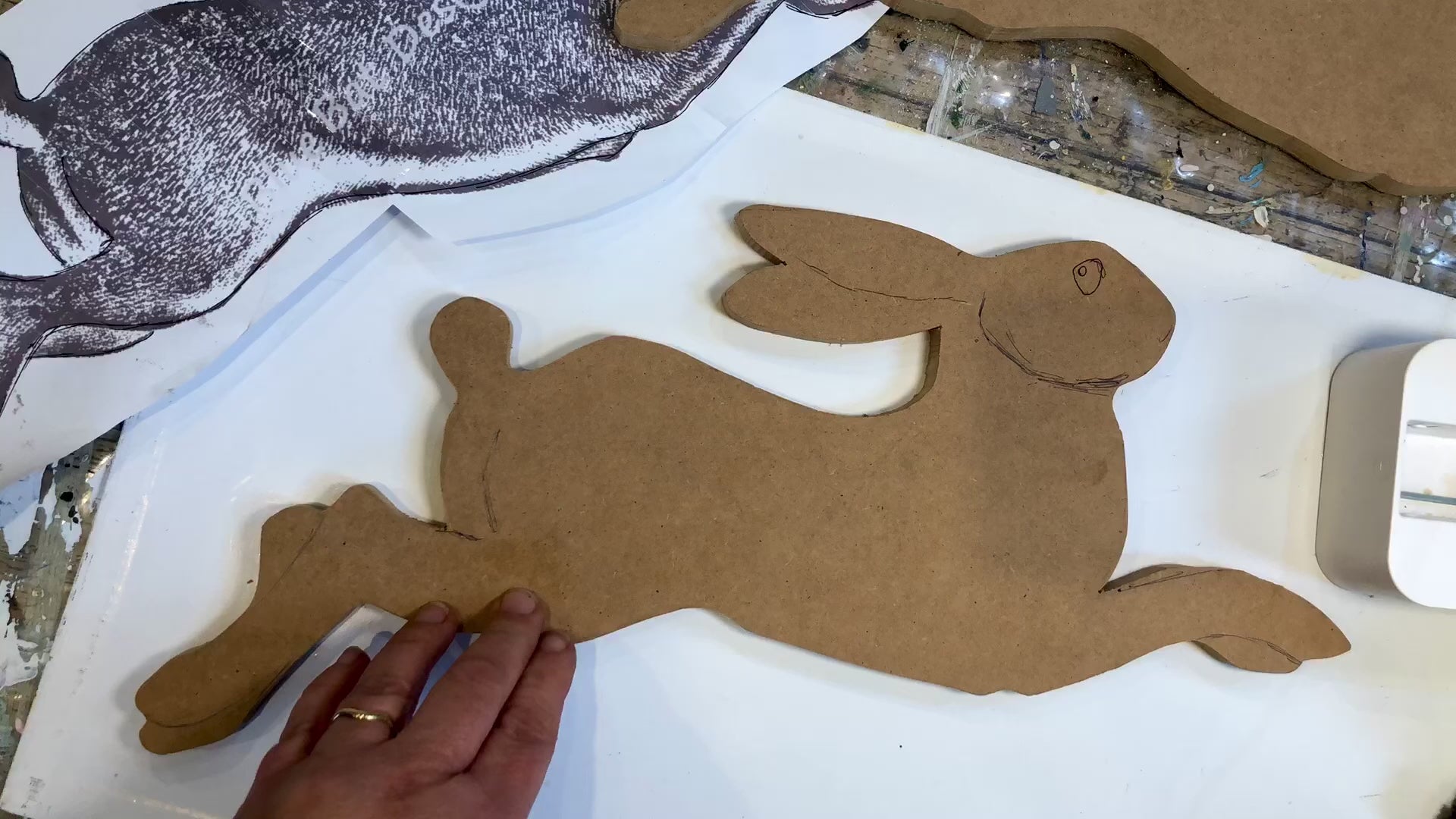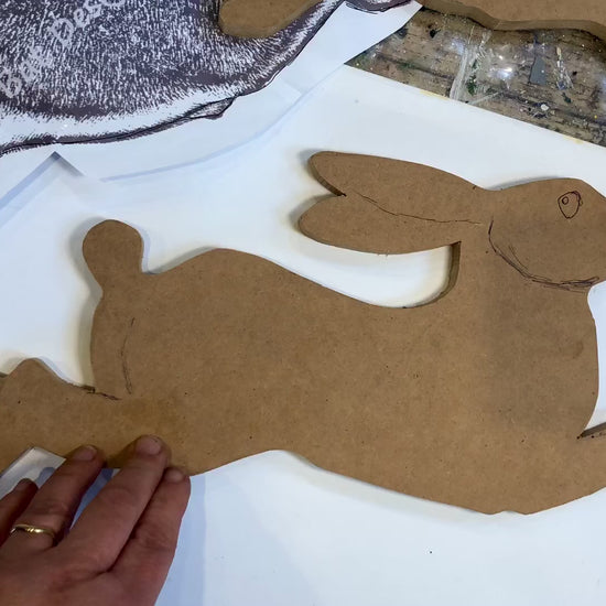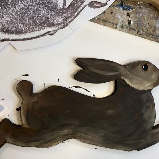 This lovely hare shape is cut out by my son Harry… a fab hand in the woodshed. I just ask and he creates!